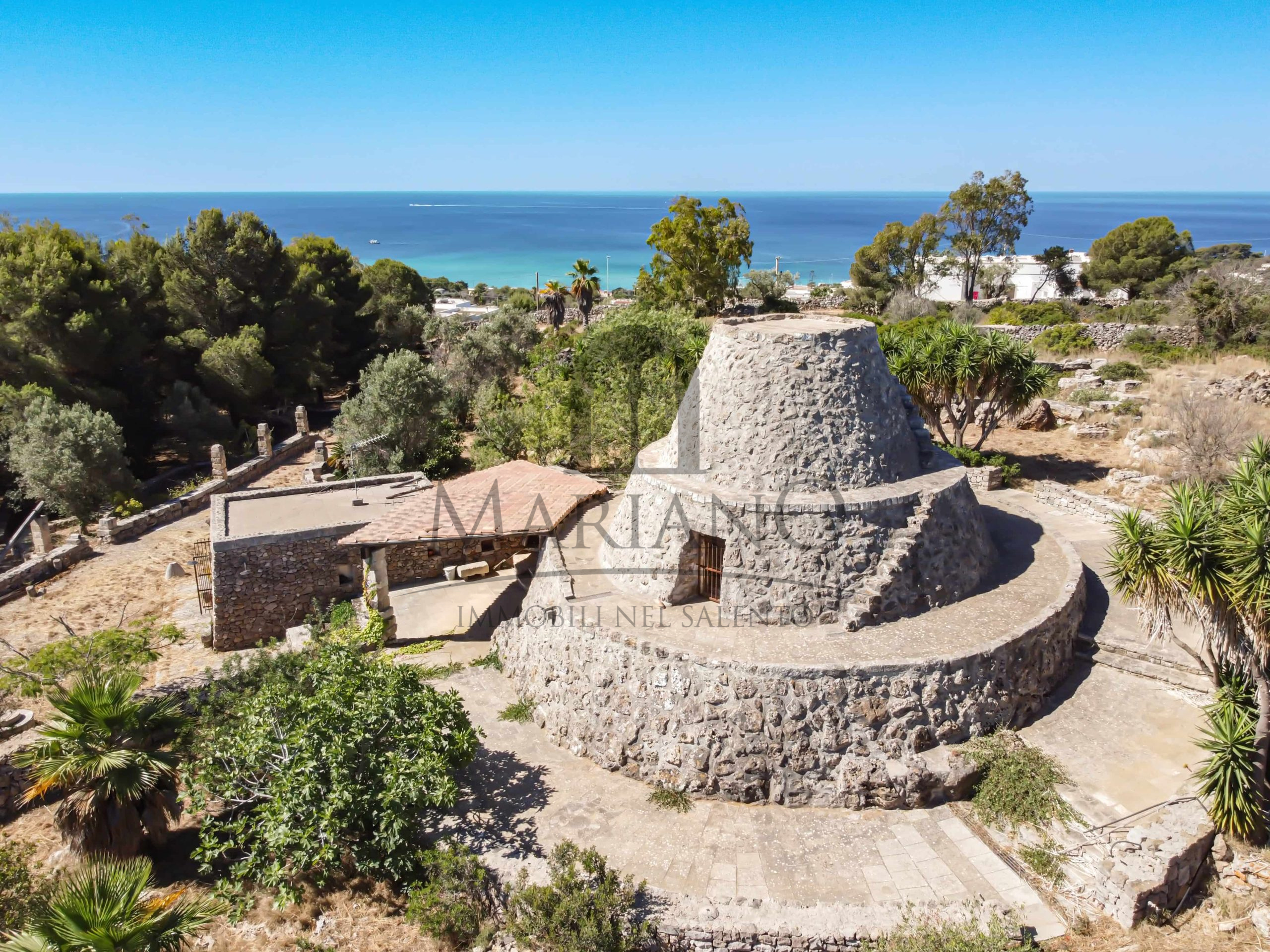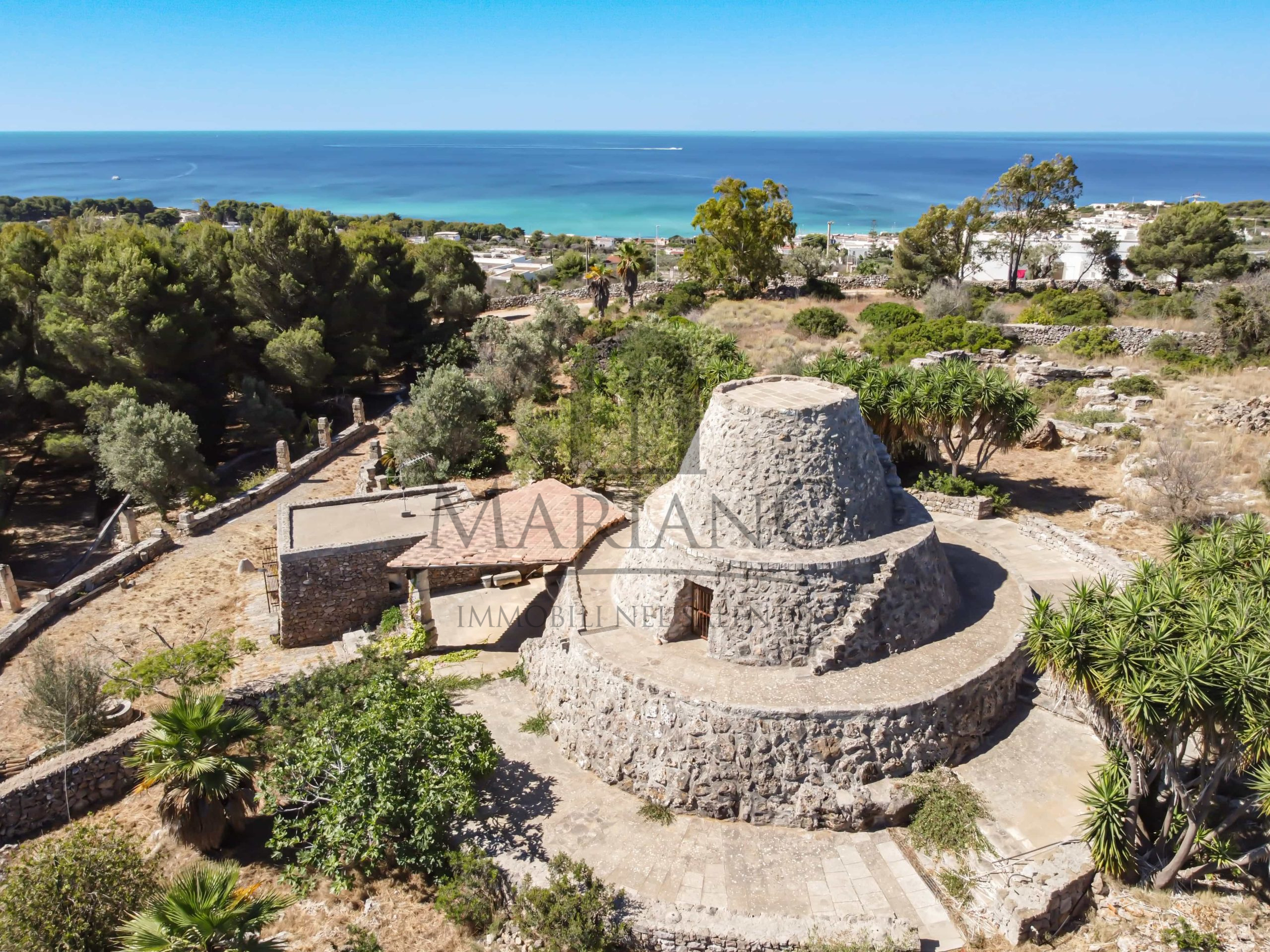 Esternamente “Il Pajarone Vista Mare” può sembrare composto da più trulli sovrapposti, ma una volta all’interno, si rivela una struttura meticolosamente progettata. Le dimensioni generose (diametro e altezza) sono state calcolate con precisione per creare due vani separati, uno sopra l’altro. Questa particolarità architettonica rende la struttura veramente unica, che dispone anche di un ampio terreno di circa 7500 mq con all’interno una variegata macchia mediterranea.